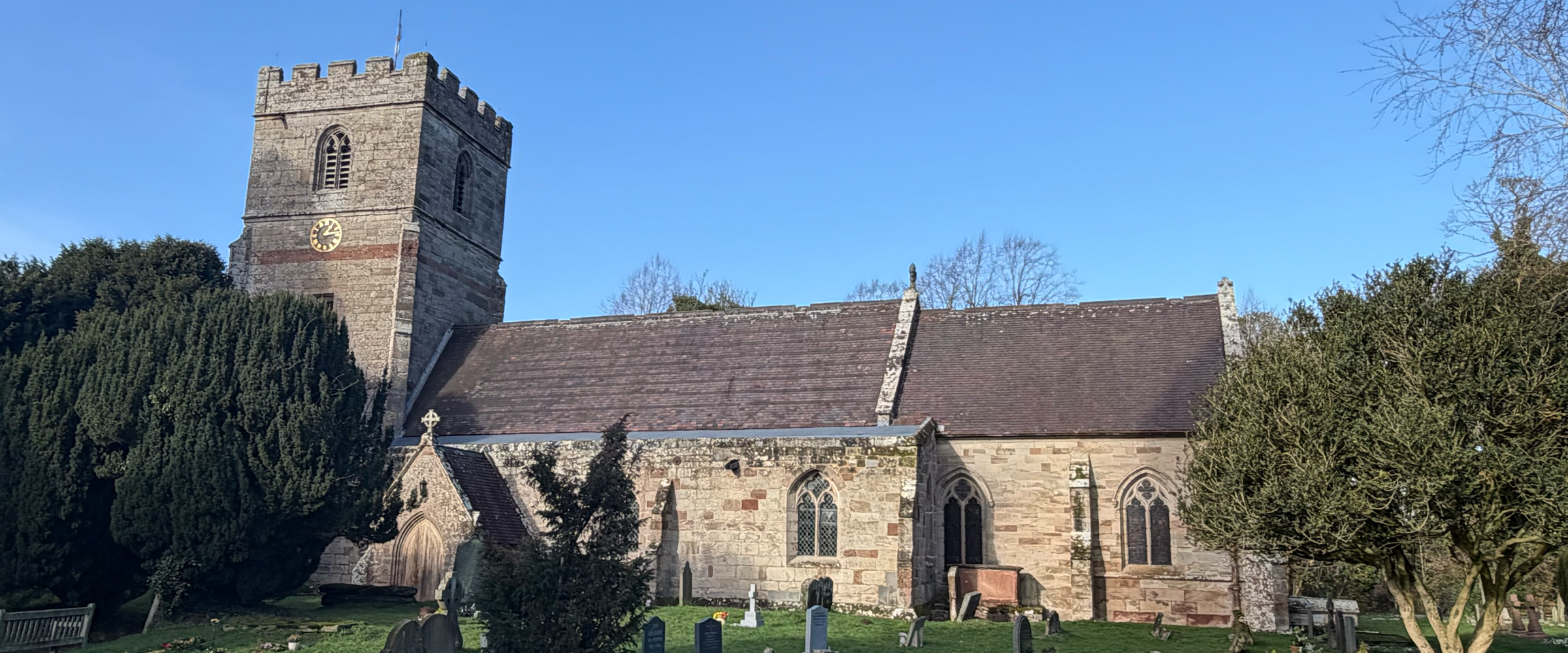 The electrician obviously did not own a ladder, as the ringing room lights are on the walls at eye level and not the ceiling. The village is just outside Droitwich, where most amenities may be found.